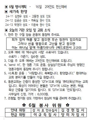 6월 2일 주보입니다.