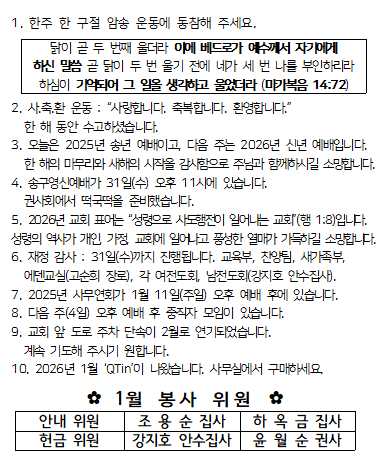 1월 4일 주보입니다.