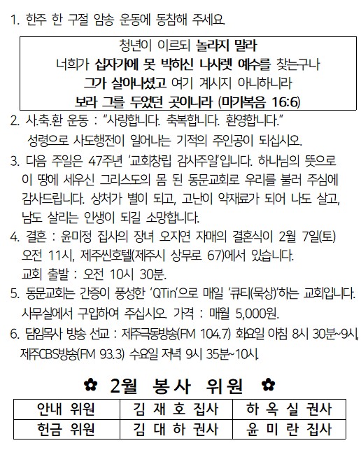 2월 1일 주보입니다.