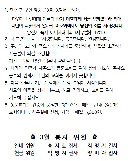 3월 1일 주보입니다.